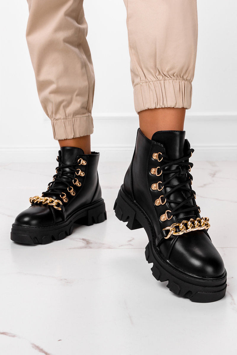 Właśnie zrecenzowałem Czarne botki workery damskie ze złotym łańcuchem sznurowane Casu G22WX2-B-39
