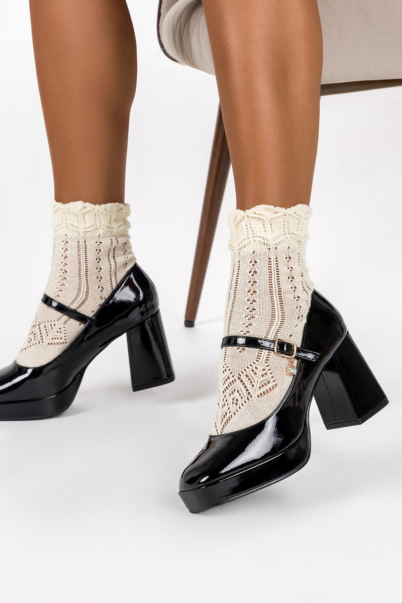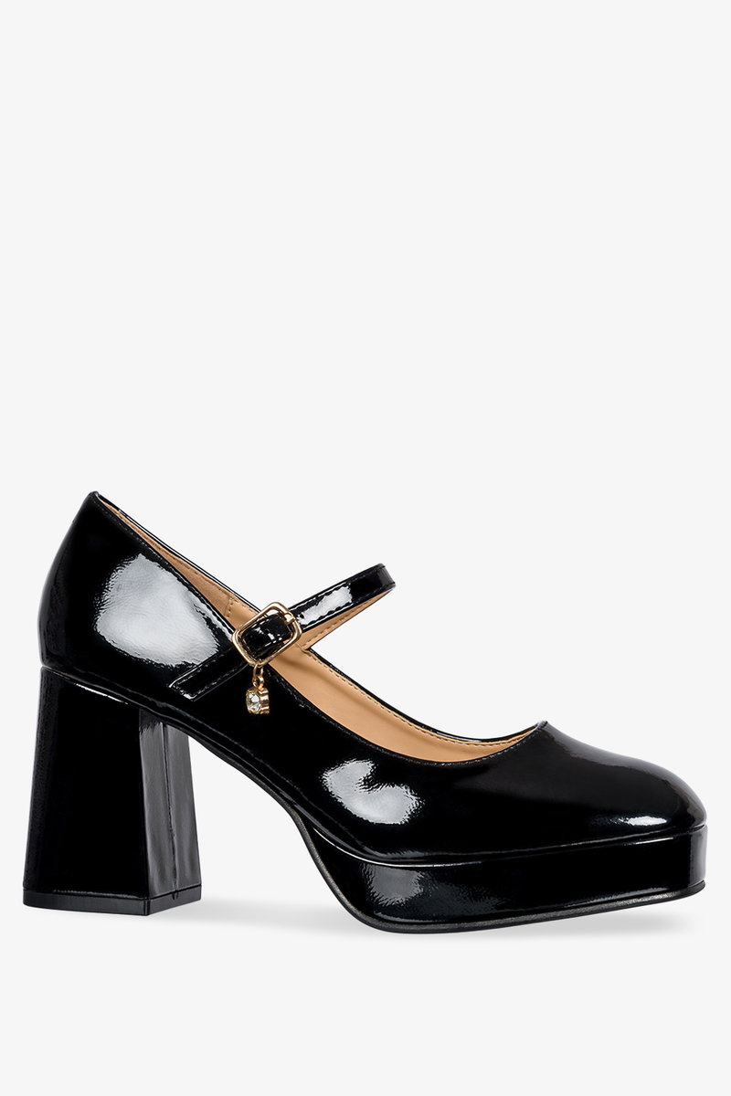 Właśnie zrecenzowałem Czarne czółenka na klocku lakierowane damskie z paskiem na cholewce ozdoba Casu ER23WX13-BP-38