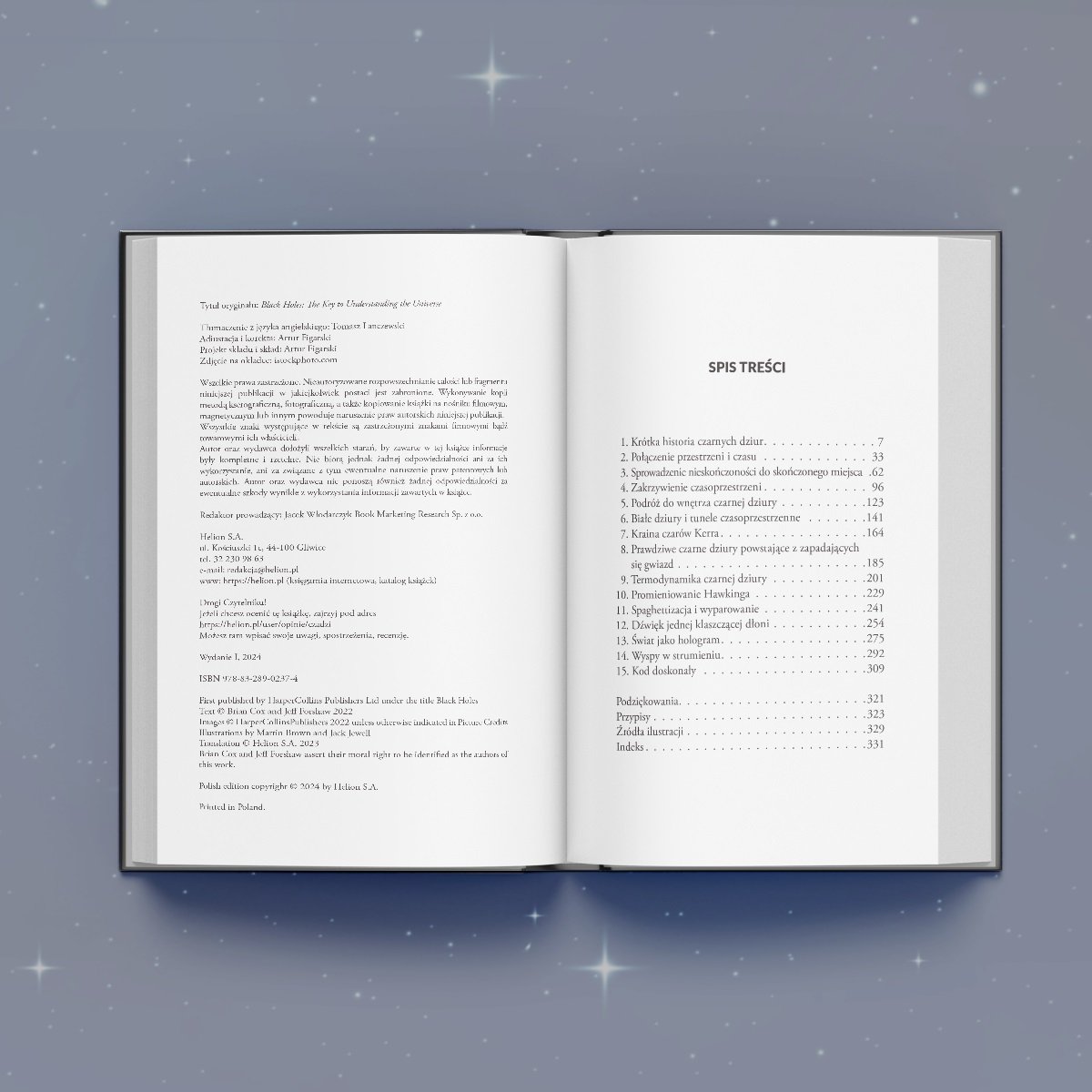"Czy można sobie wyobrazić bardziej spektakularny sposób na śmierć niż wpadnięcie do czarnej dziury? Coś, co do niej wpadnie, już przecież nigdy jej nie opuści. Niknie. Tak przez lata przynajmniej myśleliśmy. Okazuje się, że wcale tak nie jest. Nauka odkrywa przed nami nowe oblicze chyba najbardziej sekretnego obszaru czasoprzestrzeni ― czarnych dziur. Autorzy pokazują nam świat, którego jesteśmy częścią, ale o którym większość z nas w takim ujęciu nie miała bladego pojęcia. "