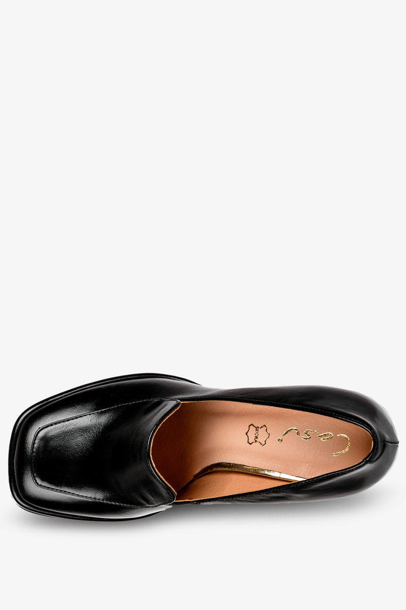 Czarne mokasyny na klocku błyszczące POLSKA SKÓRA Casu 3195-39