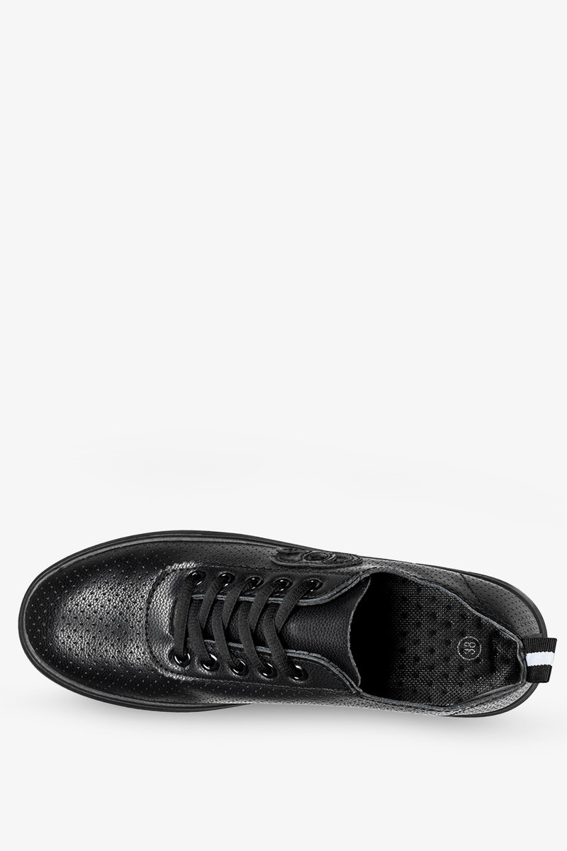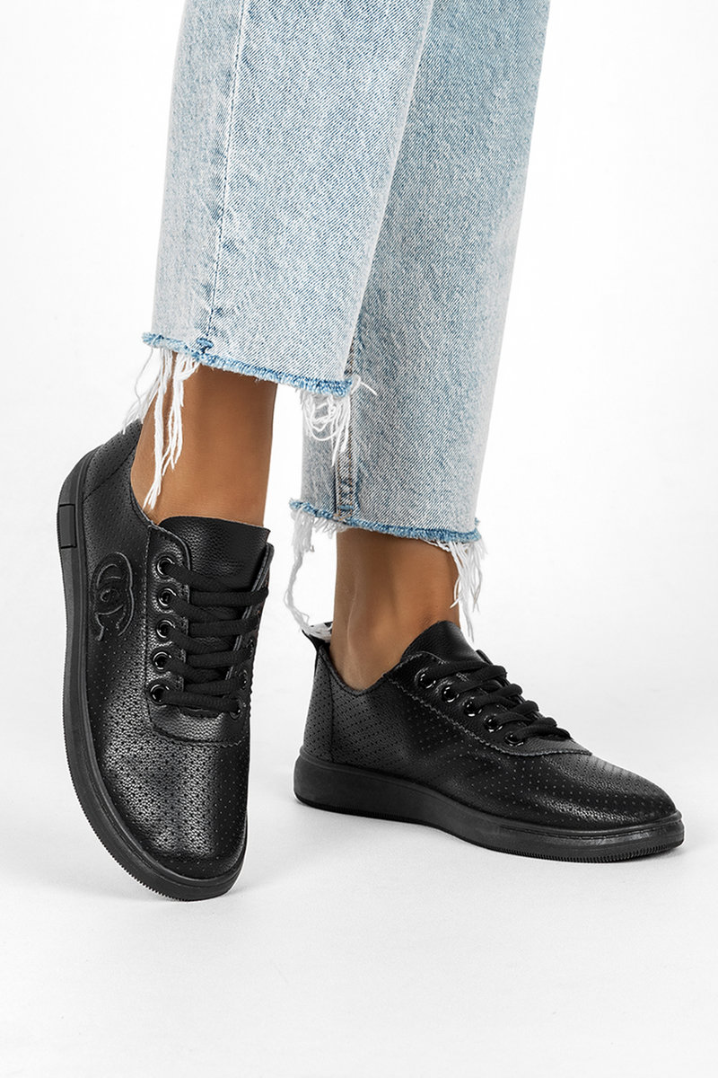Czarne trampki ażurowe sznurowane Casu. Czarne trampki damskie sznurowane to idealne obuwie dla osób poszukujących zarówno wygody, jak i stylowego wyglądu. Wykonane z czarnej skóry ekologicznej, ażurowej, świetnie pasują do różnych stylizacji. Płaska podeszwa jest jednym z głównych elementów tych butów, dzięki czemu zapewnia komfort naszym stopom. Sznurowadła pozwalają dopasować buty do swojej stopy. Wykonane z lekkich materiałów są wygodne i nie obciążają stopy podczas chodzenia. Idealnie sprawdzą się na codzienne spacery, wycieczki czy aktywność na świeżym powietrzu. Trampki sznurowane to doskonałe obuwie dla osób lubiących wygodę, swobodę ruchu i modny wygląd. Nieważne czy nosisz je na co dzień czy od czasu do czasu, trampki te powinny znaleźć się w Twojej garderobie.