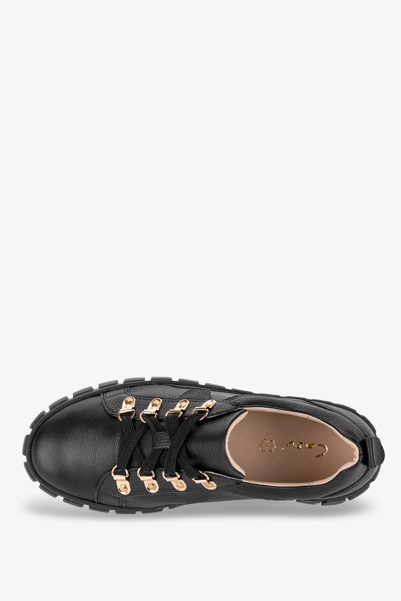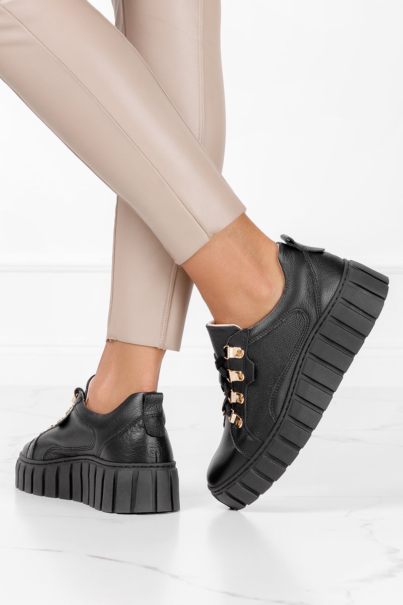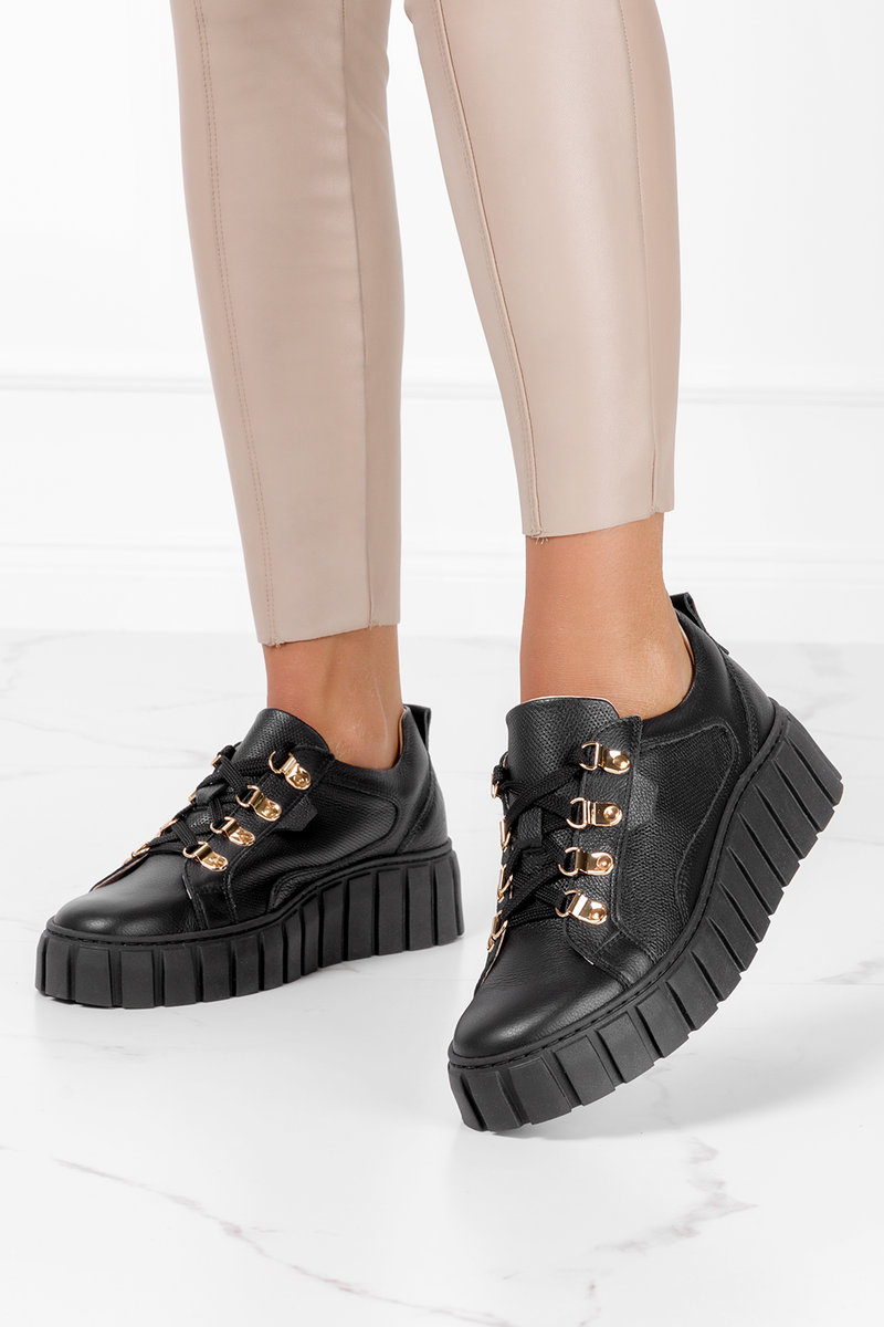 Czarne trampki creepersy na platformie sznurowane POLSKA SKÓRA Casu 005-38