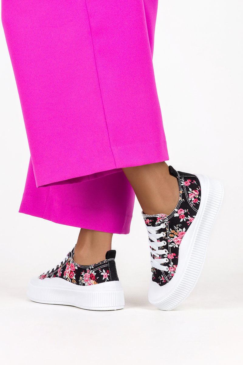 Właśnie zrecenzowałem Czarne trampki w kwiaty na platformie damskie sznurowane Casu SF-101-38