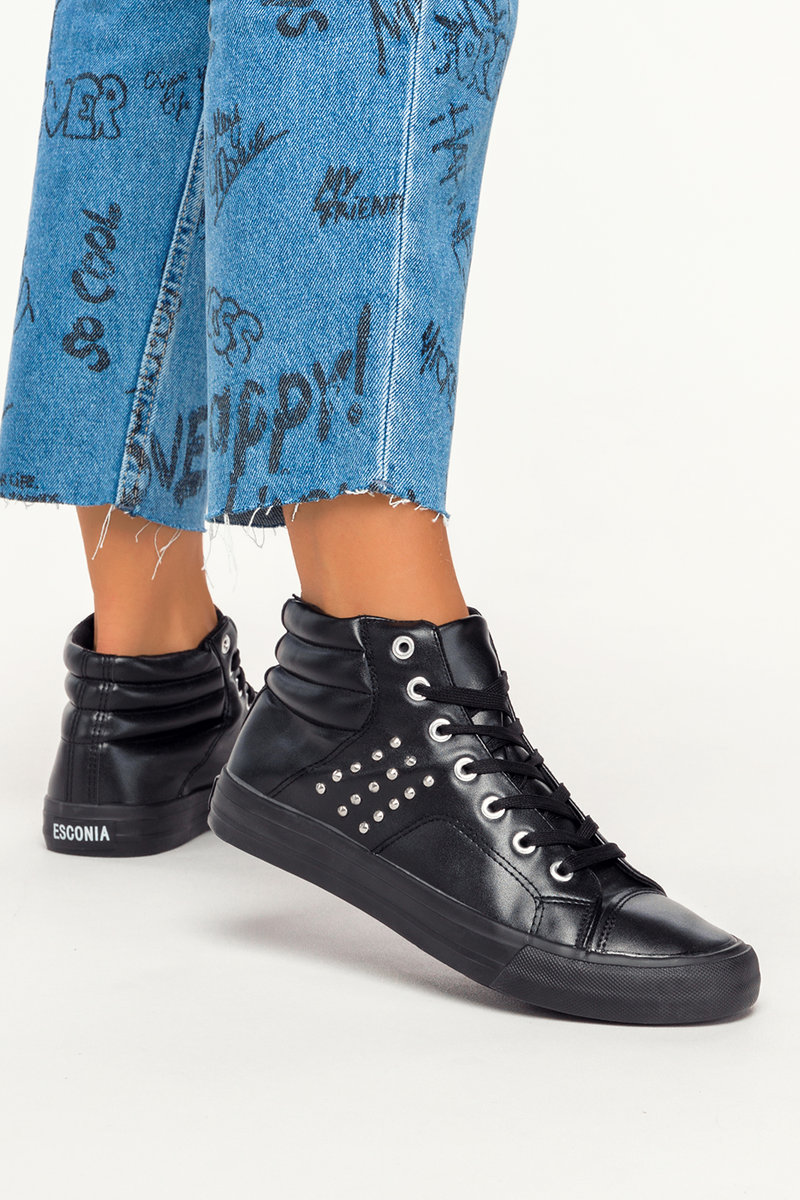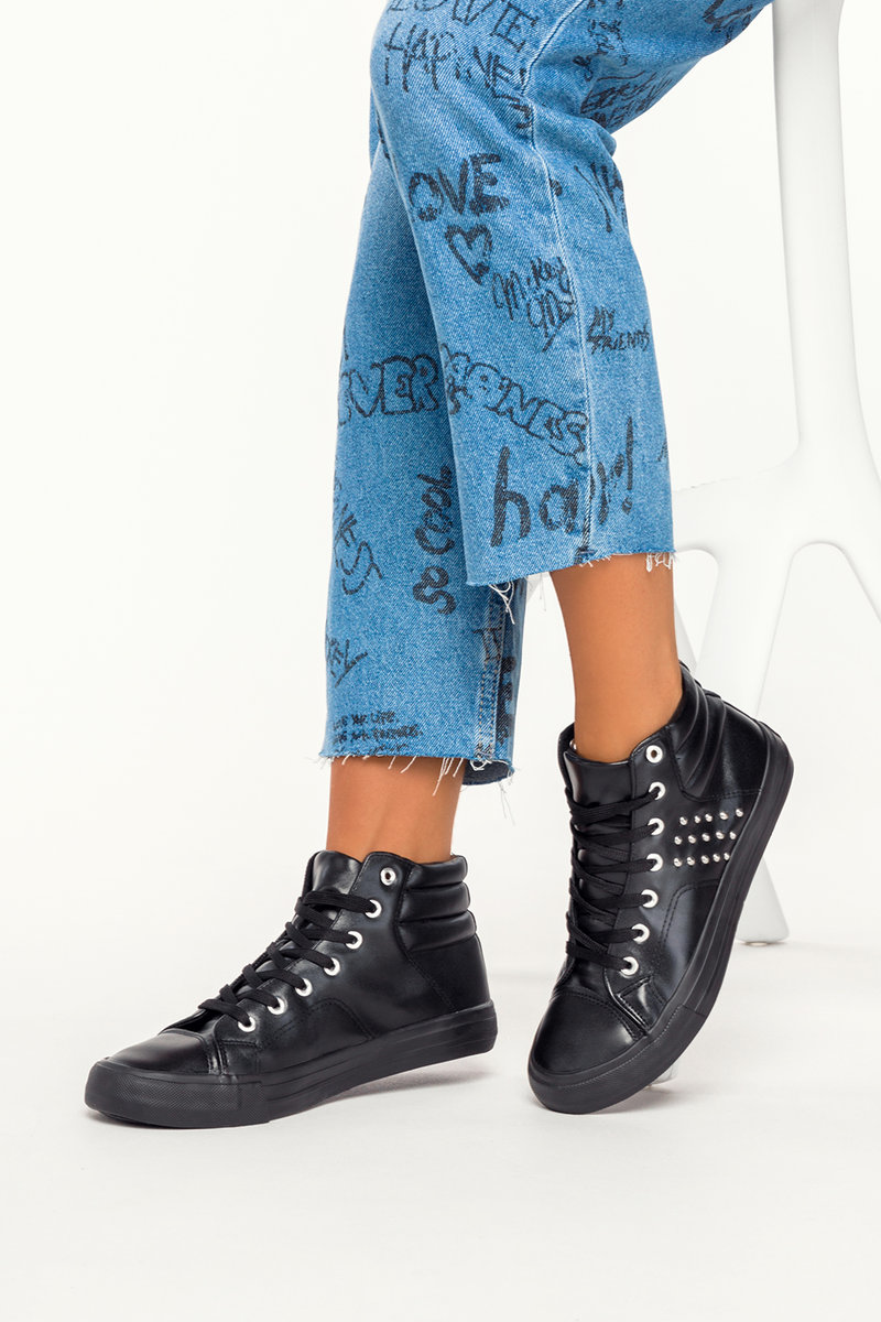 Czarne trampki wysokie z nitami sznurowane Casu 13/3/21/B