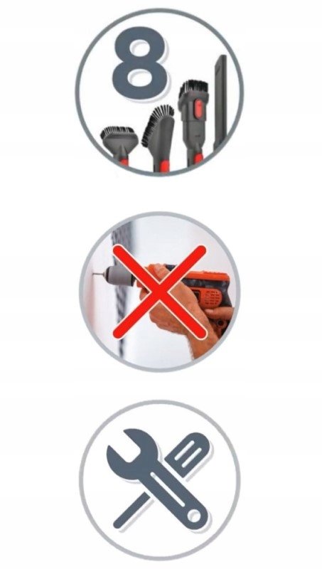 Bez konieczności wiercenia w ścianie. Wszystkie akcesoria i odkurzacz zawsze pod ręką!