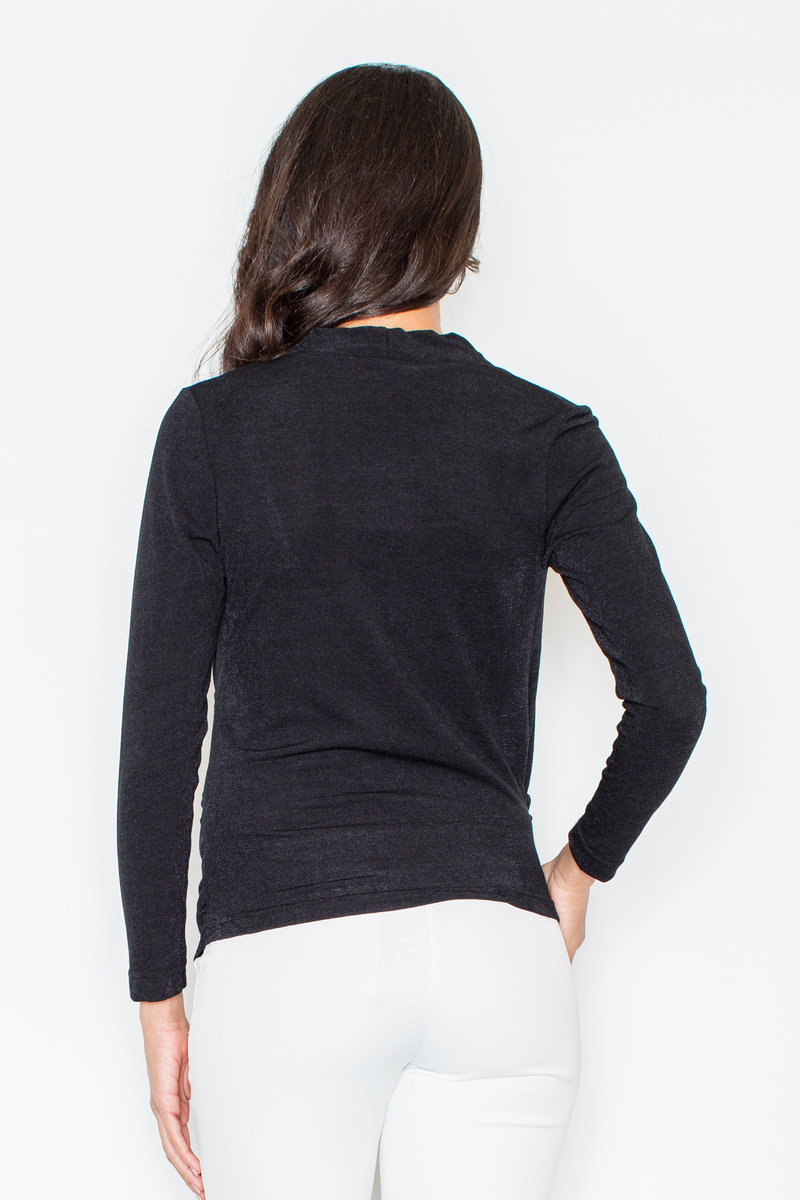 Ten lekki sweter marki FIGL to idealna propozycja na sezon jesienno-zimowy. Wykonany z bardzo miłej dzianiny, posiada kopertowy dekolt i długie rękawy. Klasyczny kolor czarny sprawia, że sweter pasuje do wielu stylizacji. Produkcja odbywa się w Polsce, a modelka prezentująca sweter ma 174 cm wzrostu. Ten sweter to elegancki i praktyczny dodatek do Twojej garderoby.