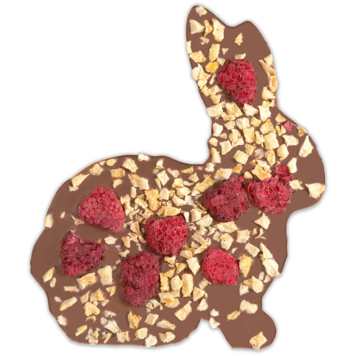 Czekolada mleczna w kształcie zająca wielkanocnego 100 g czekolada z dodatkiem brzoskwini liofilizowanej oraz maliny Przedstawiamy Państwu wyjątkową czekoladę w kształcie uroczego zająca ...