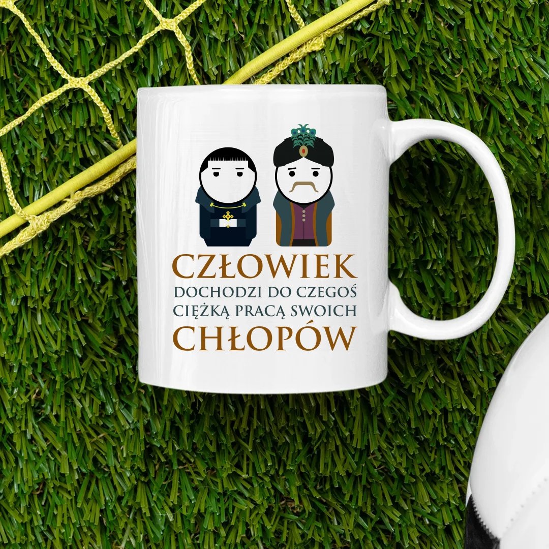 | Nazwa: | Kubek ceramiczny Człowiek dochodzi do czegoś ciężką pracą swoich chłopów - dla fanów serialu 1670 330 ml, Koszulkowy |