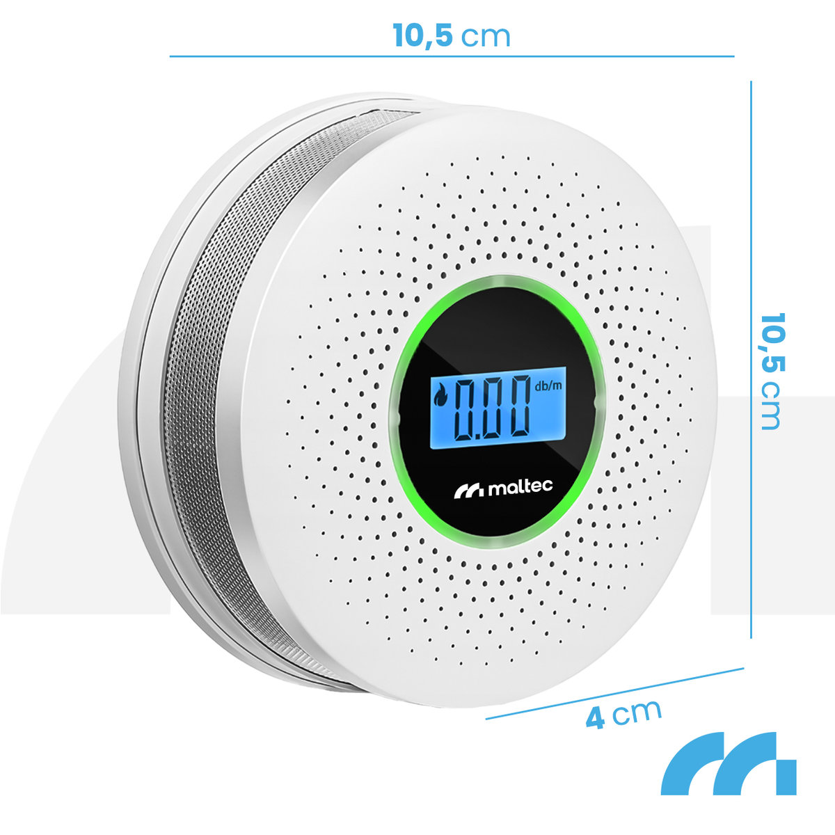 Wyposażony w wyświetlacz LCD i mikroprocesor, na bieżąco pokazuje stężenie tlenku węgla (CO) w ppm oraz poziom dymu (db/m).