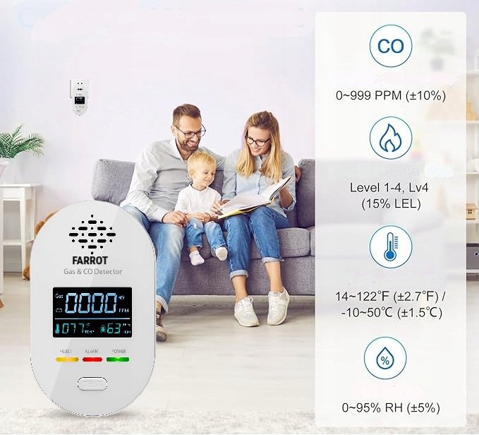 DETEKTOR ALARM CZUJNIK GAZU ZIEMNEGO, LPG i TLENKU WĘGLA CO CZADU 4W1 WILGOTNOŚĆ i TEMPERATURY ŻYWOTNOŚĆ CZUJNIKA 3 LATA✔️ZADBAJ O SWOJE BEZPIECZEŃSTWO✔️Korzystanie z ogrzewania gazowego
