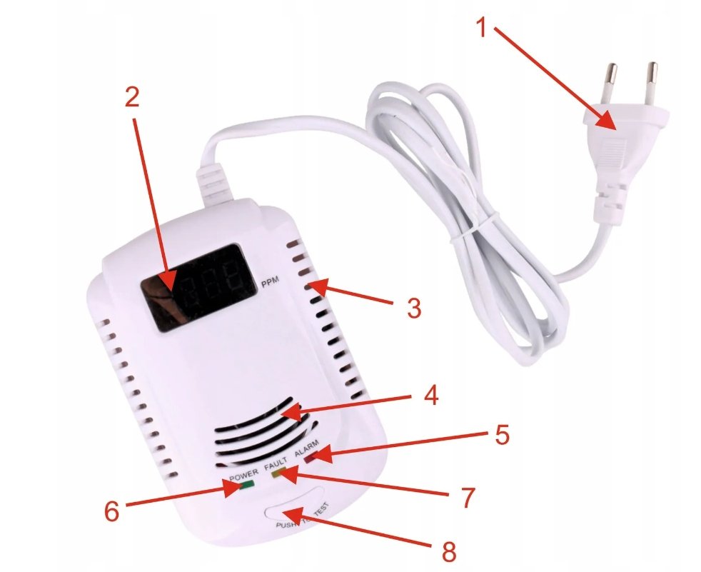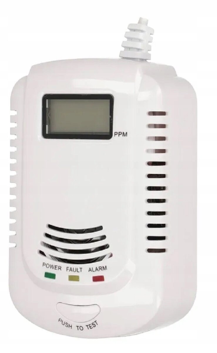 - Wykrywa: CO(czad) oraz gaz ziemny, propan, butan, LPG
