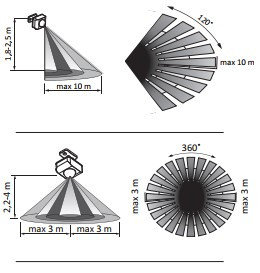 Czujnik ruchu i zmierzchu mini PIR ścienny natynkowy Polux ES-P21B Czujnik jest detektorem ruchu. Wykrywa nawet najmniejsze poruszenie w obserwowanym obszarze. Urządzenie cechuje się niewielką emisją