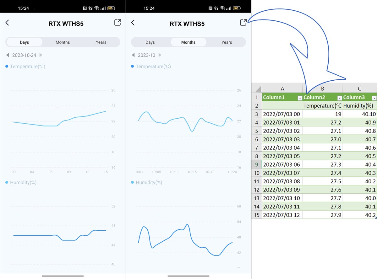 Czujnik posiada unikalną funkcję eksportu danych do pliku .csv, dzięki czemu można precyzyjnie sprawdzić jaka temperatura lub wilgotność została zmierzona w danym dniu lub godzinie w przeszłości.
