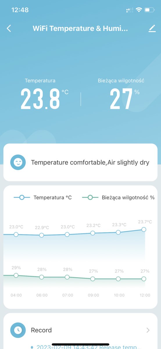 - Łączność WIFI - nie potrzebujesz dodatkowych bramek, wystarczy dostęp do WIFI i TEN CZUJNIK