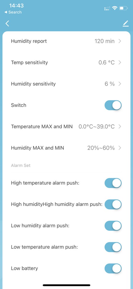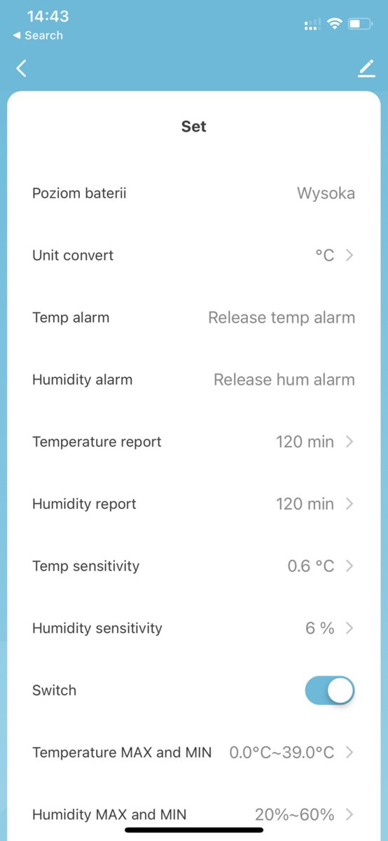 - Ustawienia powiadomień przy przekroczeniu temperatur oraz niskim stanie baterii.