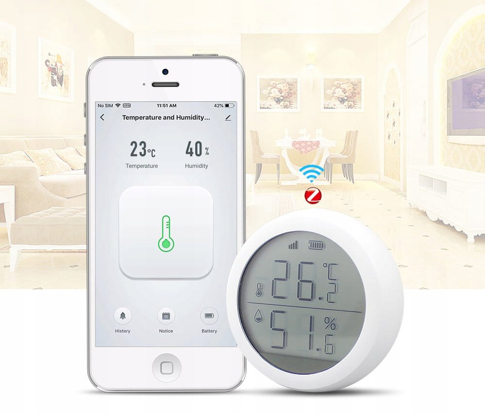 Urządzenie dzięki współpracy z aplikacją TUYA SMART LIFE pozwala wprowadzić automatyzacje. Na przykład przy zbyt wysokiej temperaturze, włącz klimatyzację lub przy zbyt niskiej wilgoci, włącz nawilżacz.