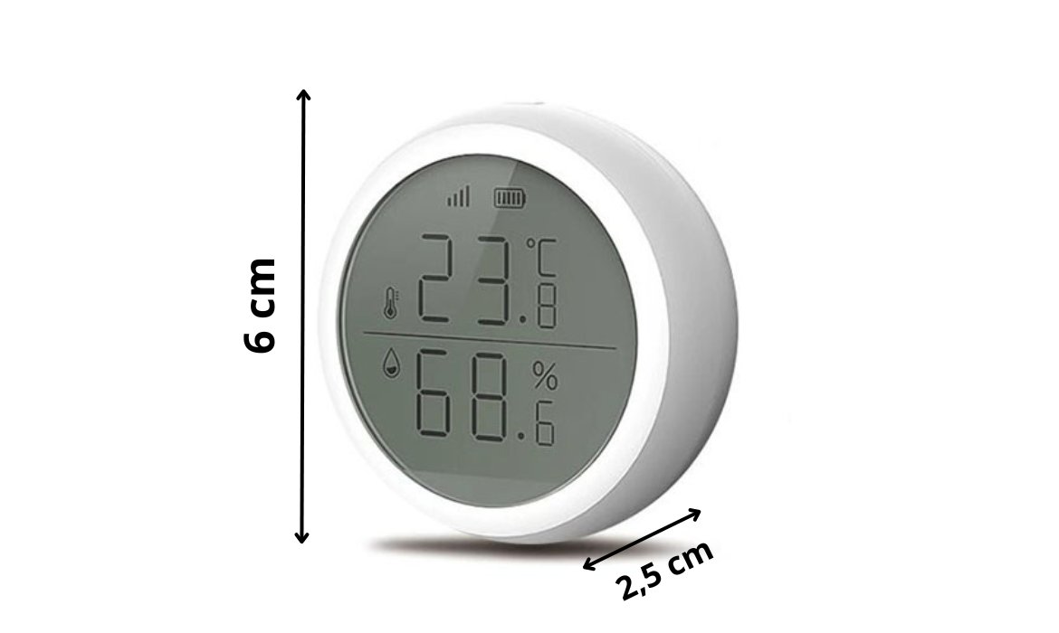 Czujnik temperatury i wilgotności ZIGBEE TUYA na baterie z ekranem LCD Nasz czujnik temperatury i wilgotności ZIGBEE Tuya z ekranem LCD pozwoli Ci sprawdzić parametry temperatury