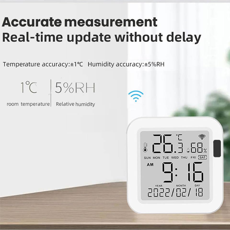 Ten bezprzewodowy czujnik temperatury i wilgotności pozwala monitorować temperaturę w pomieszczeniu w czasie rzeczywistym. Umożliwia również przesyłanie danych w czasie rzeczywistym do aplikacji mobilnej, dzięki czemu możesz sprawdzać temperaturę w domu za pomocą telefonu komórkowego, gdy jesteś poza domem.