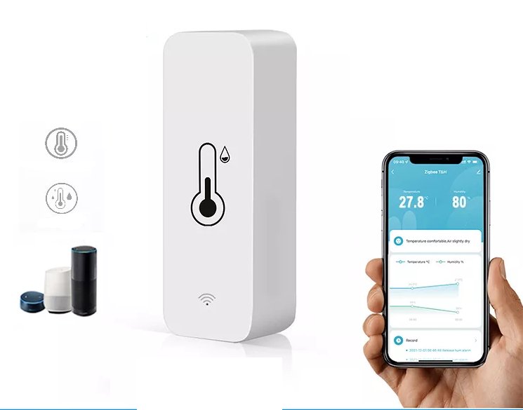 Czujnik monitoruje i rejestruje w czasie rzeczywistym temperaturę, wilgotność w pomieszczeniu. W dostępnej aplikacji Tuya Smart/Smart Life wyświetla aktualne i historyczne dane, a jeśli wykryje nietypowy dla środowiska element, wtedy wyśle powiadomienie o alarmie na twój telefon, albo wykona zdefinowany przez Ciebie scenariusz (np. wlącze klimatizacje lub ogrzewanie, potrzebna jest smart gniazdko lub prekażnik).