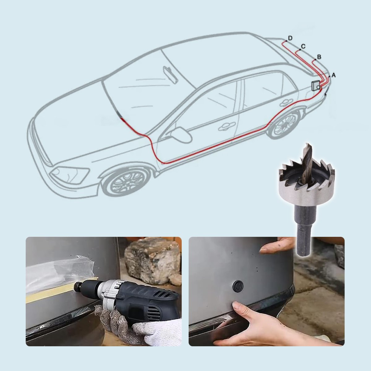 Zestaw zawiera niezbędne elementy montażowe takie jak wiertło z otwornicą 22mm i okablowanie takie jak przewód zasilający i przewody czujników, a także centralkę zasilającą oraz cztery sensory i wyświetlacz LCD, dzięki intuicyjnemu montażowi i elementom mocującym w łatwy i szybki sposób samodzielnie zamontujesz system wspomagania parkowania.