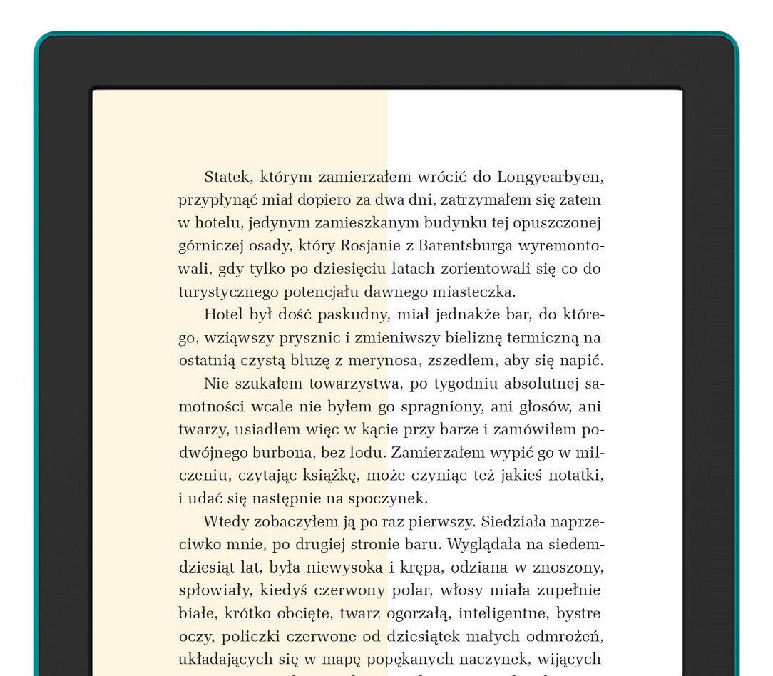 Ekran czytnika wykonany w technologii E-Ink Carta, przypomina kartkę papieru, zapewniając najwyższy komfort czytania, bez zmęczenia wzroku nawet w pełnym słońcu.