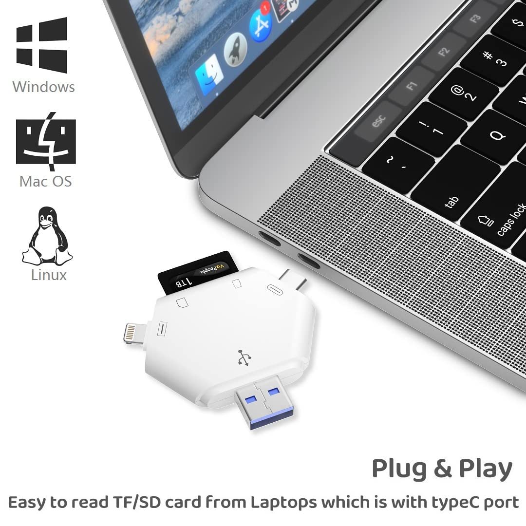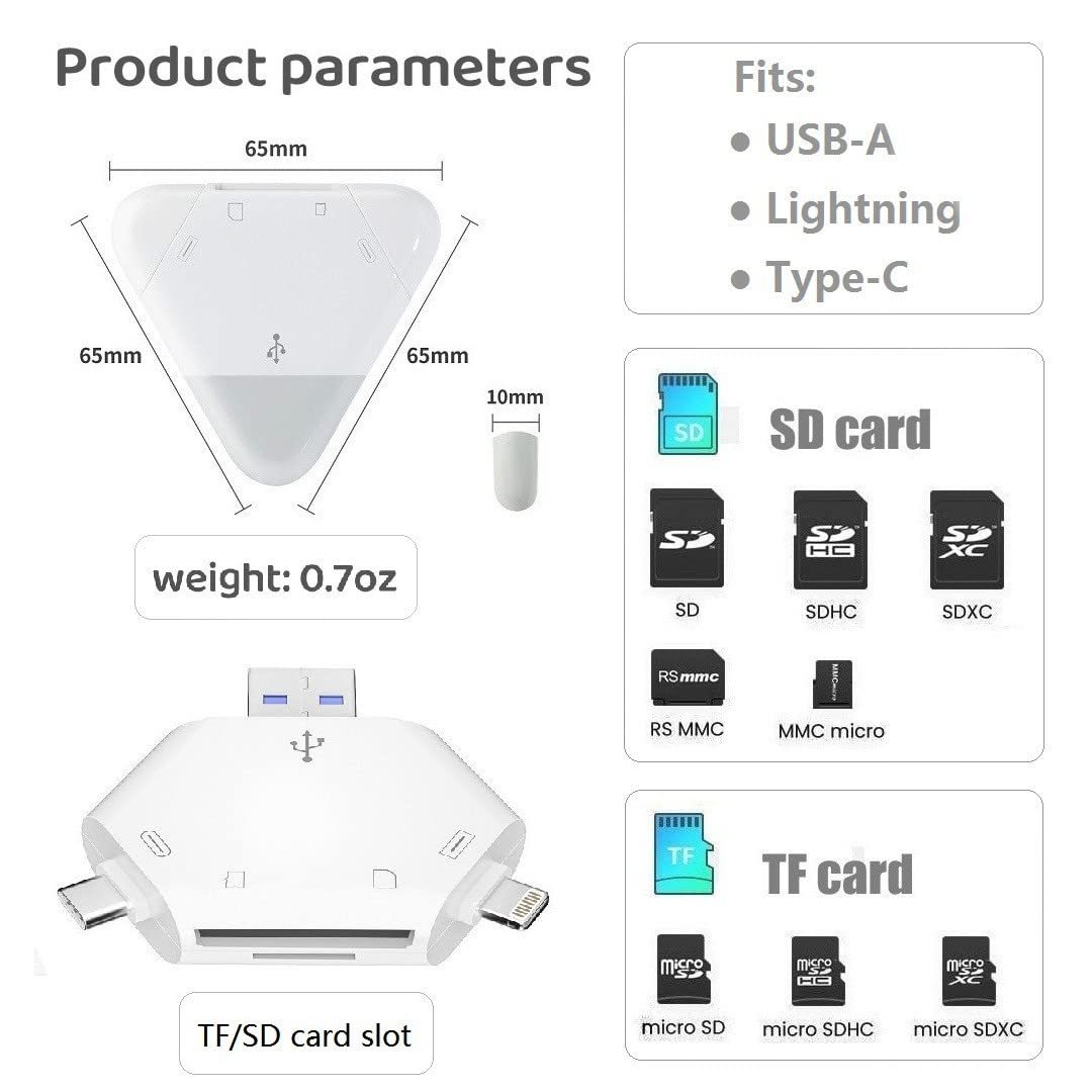 | Nazwa: | Czytnik kart SD, czytnik kart pamięci 3 w 1 do iPhone'a/iPada, urządzeń USB C i USB A, adapter karty Trail Camera Viewer |