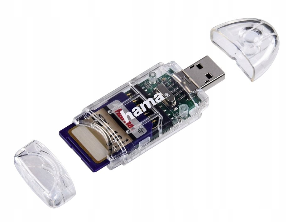 Kompaktowy czytnik kart pamięci Hama, który umożliwia odczyt i przesył danych z rożnego rodzaju kart pamięci. Czytnik jest odpowiedni zarówno do kart: SD, SDHC, jak i MMC / MMCplus oraz miniSD / miniSDHC /, a także microSD / microSDHC. Możliwość obsługi kart mini SD poprzez adapter oraz kart microSDHC bez adaptera jest bardzo wygodna. Czytnik umożliwia także bezpośredni transfer danych z jednej karty na drugą.