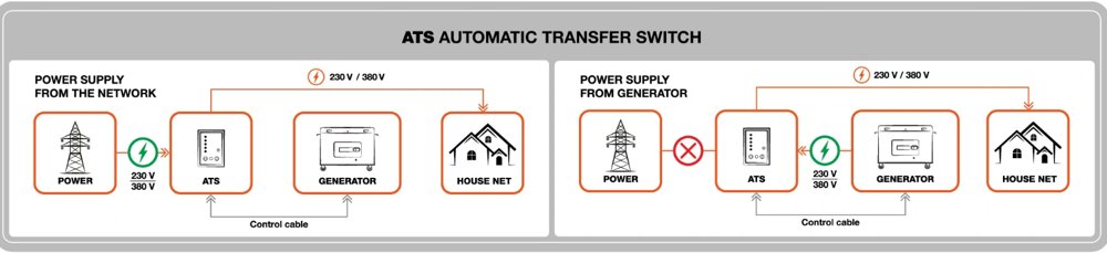 W przypadku zaniku zasilania lub spadku napięcia w sieci podstawowej moduł uruchamia agregat prądotwórczy. Po wznowieniu dostarczania energii elektrycznej następuje przełączenie powrotne na tor zasilania podstawowego, a agregat zostaje wyłączony i przechodzi w tryb czuwania. Moduł także stale monitoruje napięcie akumulatora rozruchowego agregatu i w razie potrzeby załącza ładowanie. Urządzenie posiada wygodne montażowe uchwyty ścienne oraz solidną, metalową obudowę zamykaną na klucz.