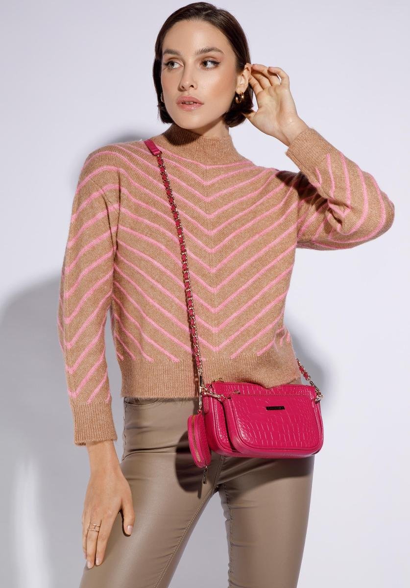 | Nazwa: | Damska torebka ze skóry o fakturze croco podwójna z etui różowa |