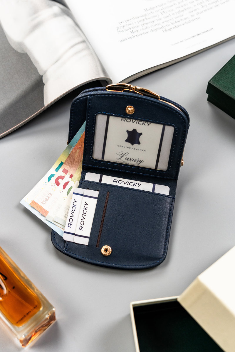 | Nazwa: | Damski portfel eko Milano Design modna portmonetka na zatrzask bigiel na karty, granatowy |