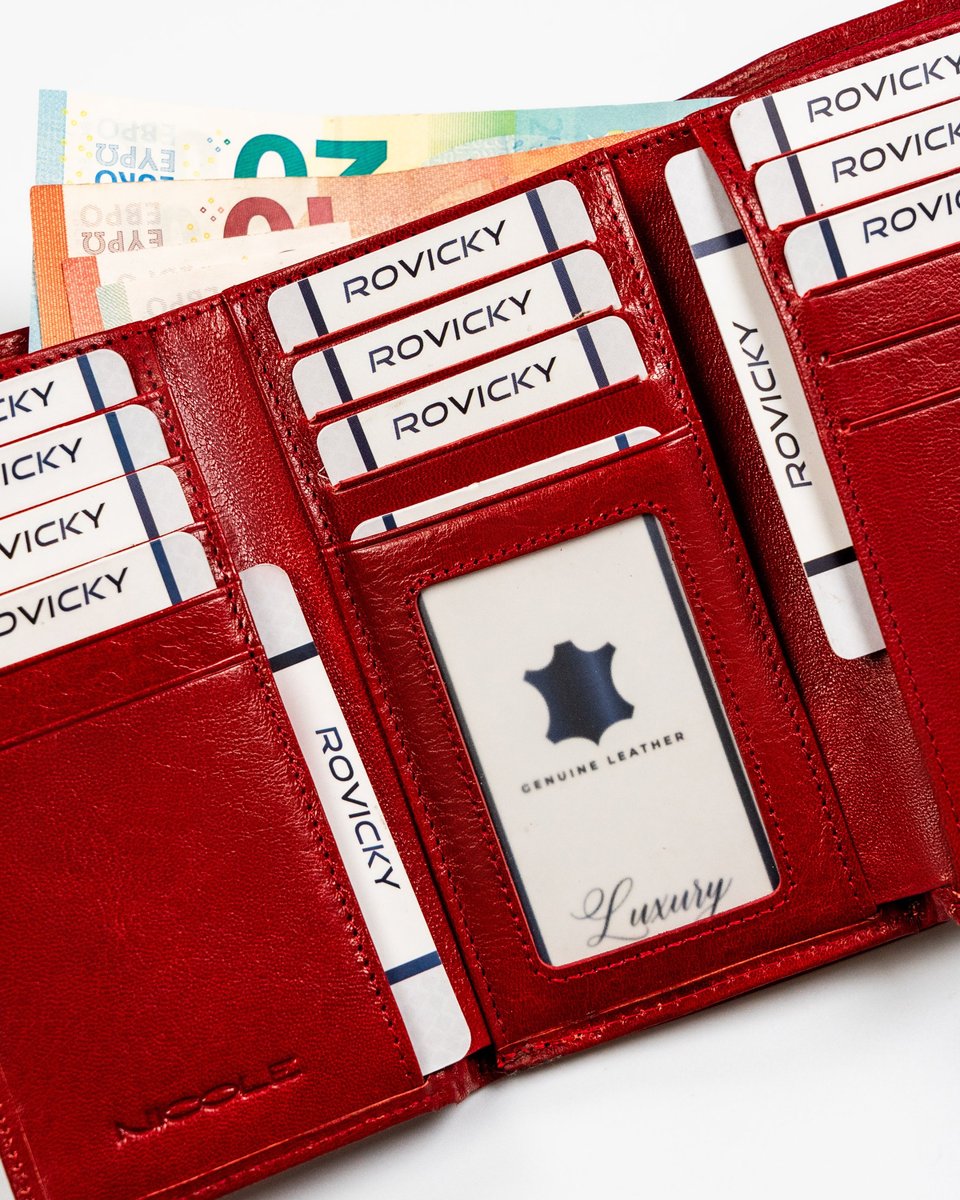Właśnie zrecenzowałem Damski skórzany portfel Nicole na karty i gotówkę portmonetka na bigiel, czerwony