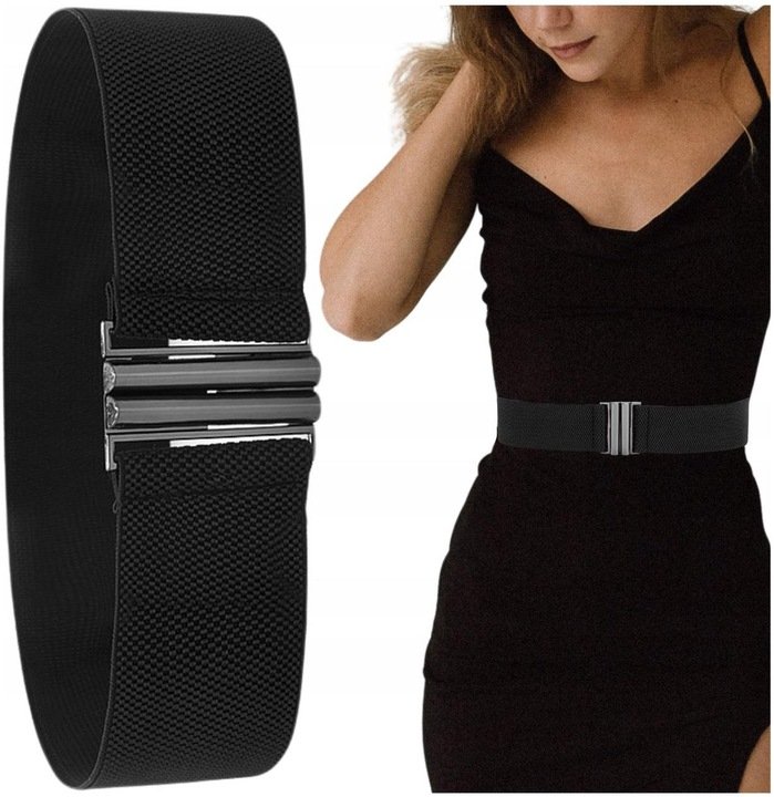 Damski szeroki CZARNY Pasek do Talii elastyczny