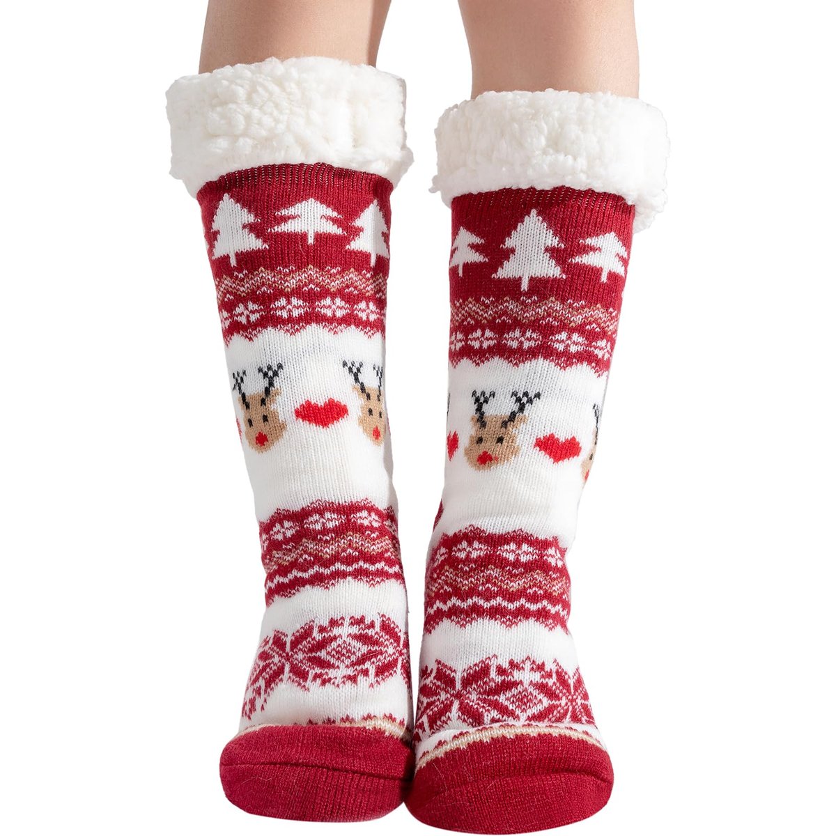 Właśnie zrecenzowałem Damskie skarpetki-kapcie świąteczne, puszyste skarpetki, damskie skarpetki świąteczne, urocze, ciepłe skarpetki do spania, antypoślizgowe skarpetki