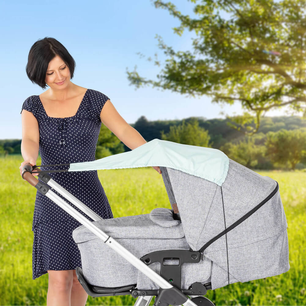 - Daszek pasuje do wszystkich typowych pojedynczych wózków głębokich (gondoli dla jednego dziecka).