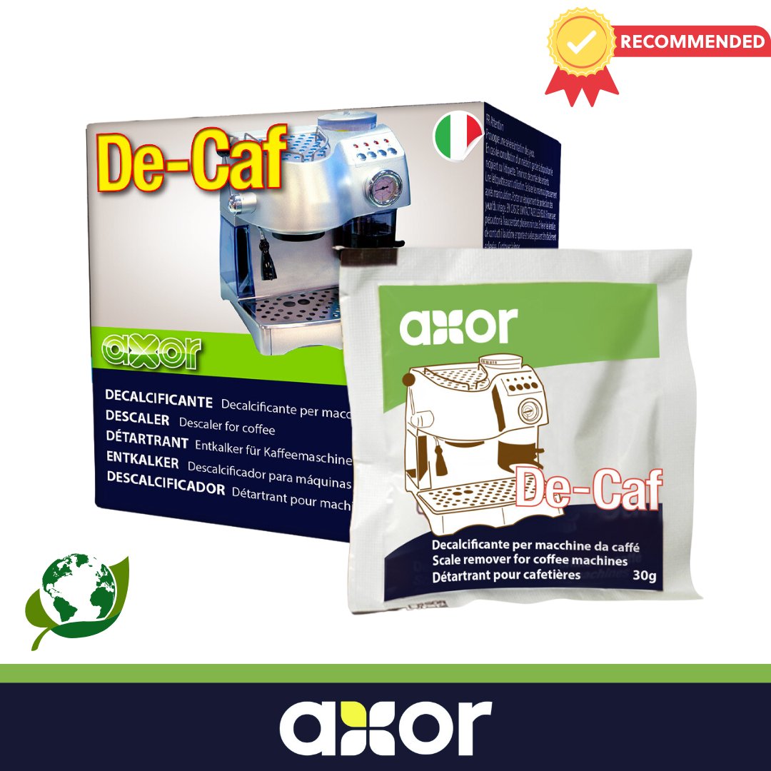 DE-CAF to środek odkamieniający w postaci proszku, w gotowych do użycia saszetkach, który w naturalny i skuteczny sposób usuwa kamień z ekspresów do kawy, czajników i ...