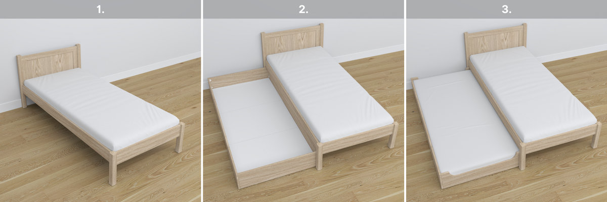 - Łóżka wyposażone w szufladę posiadają wysokiej jakości gumowane kółka, które niwelują ryzyko uszkodzenia podłoża.