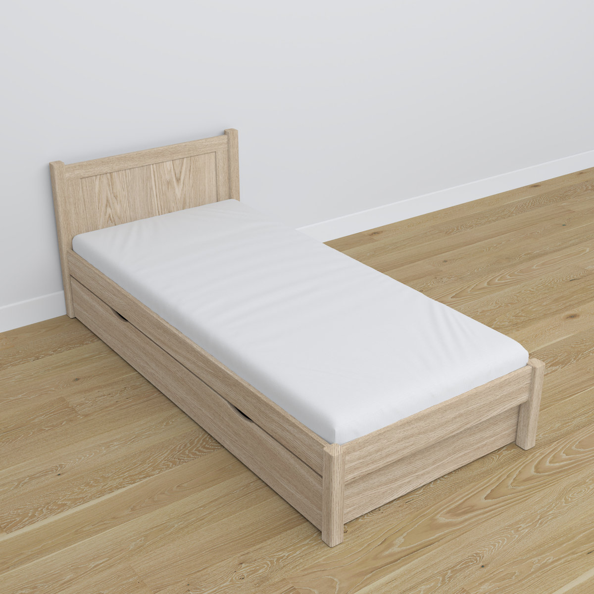Drewniane łóżko pojedyncze dostępne jest w wersji z szufladą do przechowywania lub z wzmocnioną szufladą przeznaczoną na dodatkowy materac. Występuje również wielu wariantach kolorystycznych.