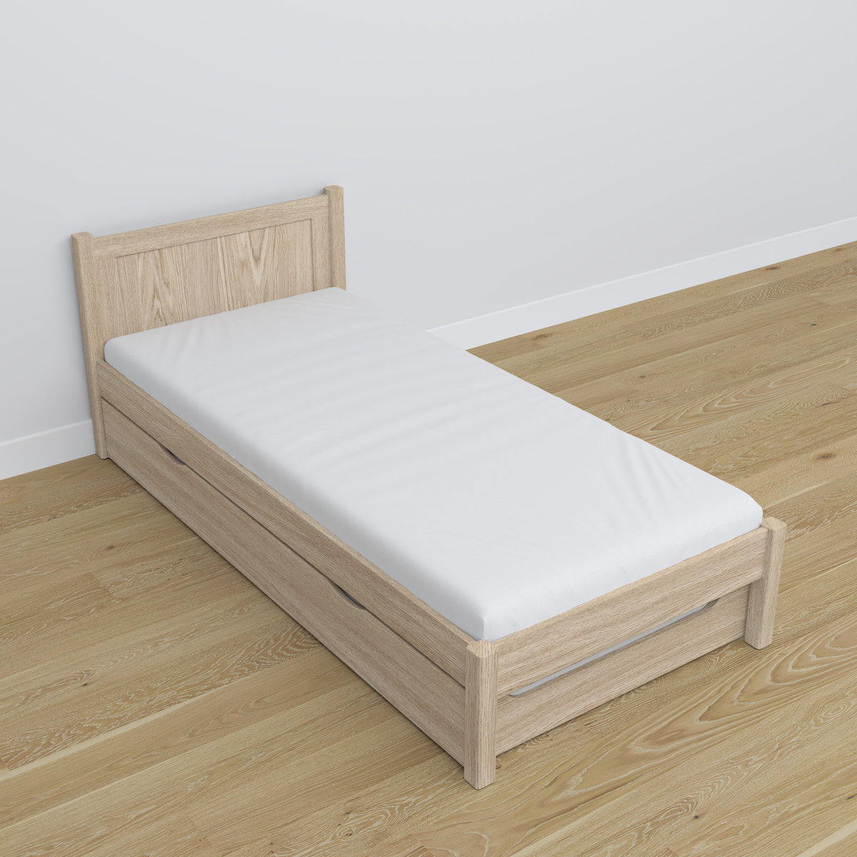 | Nazwa: | Dębowe łóżko pojedyncze z szufladą na materac N02 dąb bielony 80x180 |