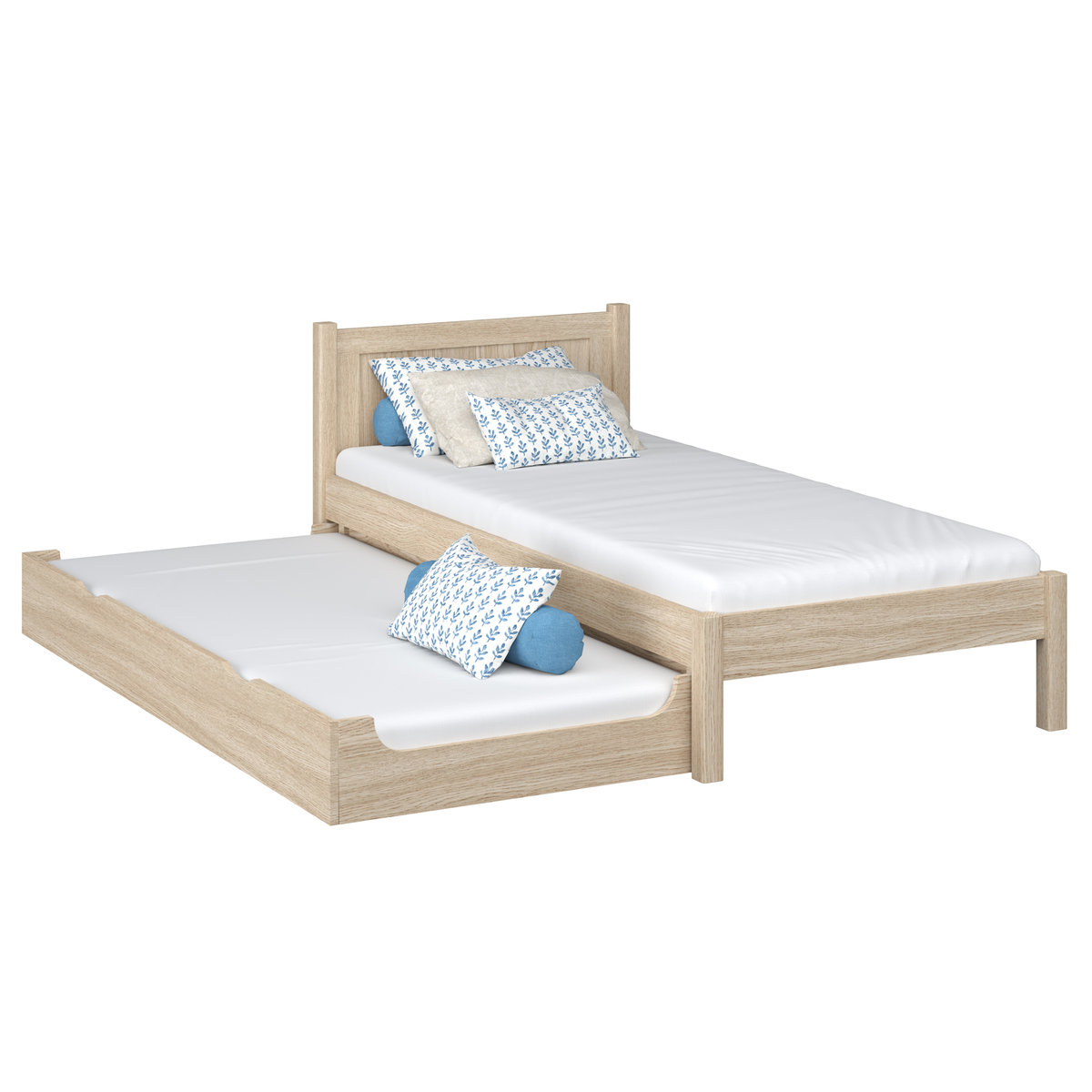 Drewniane łóżko pojedyncze dostępne jest w wersji z szufladą do przechowywania lub z wzmocnioną szufladą przeznaczoną na dodatkowy materac. Występuje również wielu wariantach kolorystycznych.