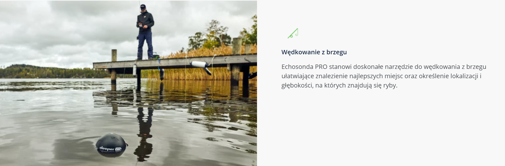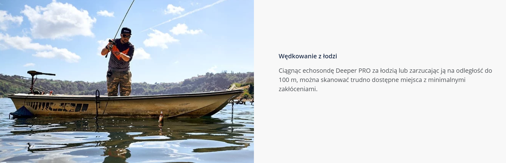 Echosonda PRO skanuje do głębokości 80 m i oferuje zasięg zarzucania wynoszący 100 m