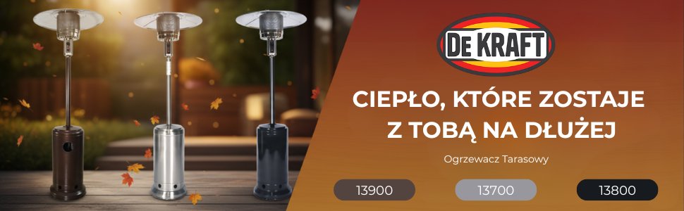 Ogrzewacz Tarasowy DeKraft 13900 Moc, styl i ciepło w Twoim ogrodzie Parasol grzewczy gazowy 13 kW DeKraft to idealny sposób na wydłużenie sezonu w ogrodzie i na tarasie. ...