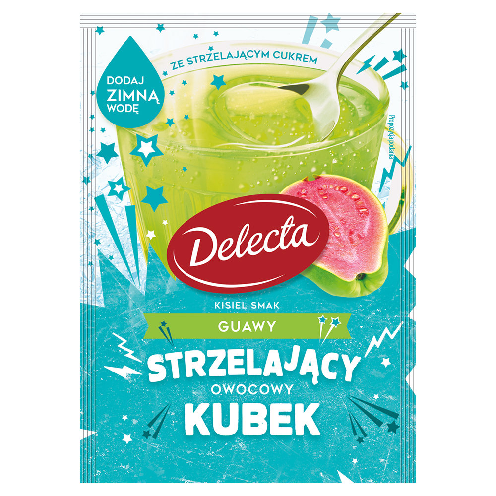 Delecta OK Kisiel na zimno z cukrem strzelającym smak guawy 34 g Kisiel na zimno ze strzelającym cukrem - smak guawy Delecta Strzelający Owocowy Kubek to wyjątkowy kisiel guawa na zimno, który ...
