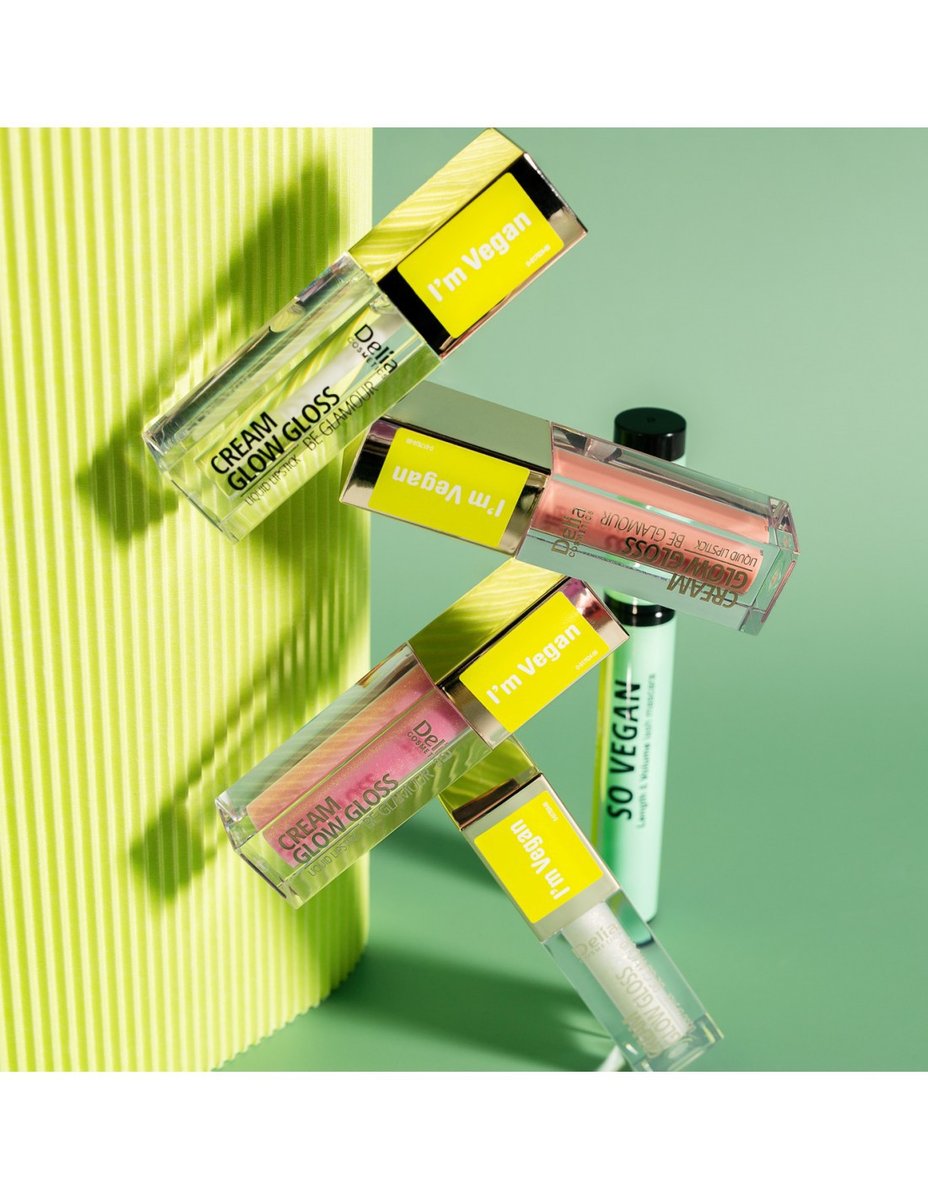 Wegański błyszczyk powiększający usta Delia Cream Glow Gloss Be Glamour I'm Vegan łączy właściwości makijażu z pielęgnacją. Sprawia, że usta wyglądają na pełniejsze, są lśniące i bardziej ponętne. Błyszczyk może być stosowany samodzielnie lub z ulubioną pomadką. Płynna konsystencja oraz wygodny aplikator zapewnia pełen komfort stosowania kosmetyku.
