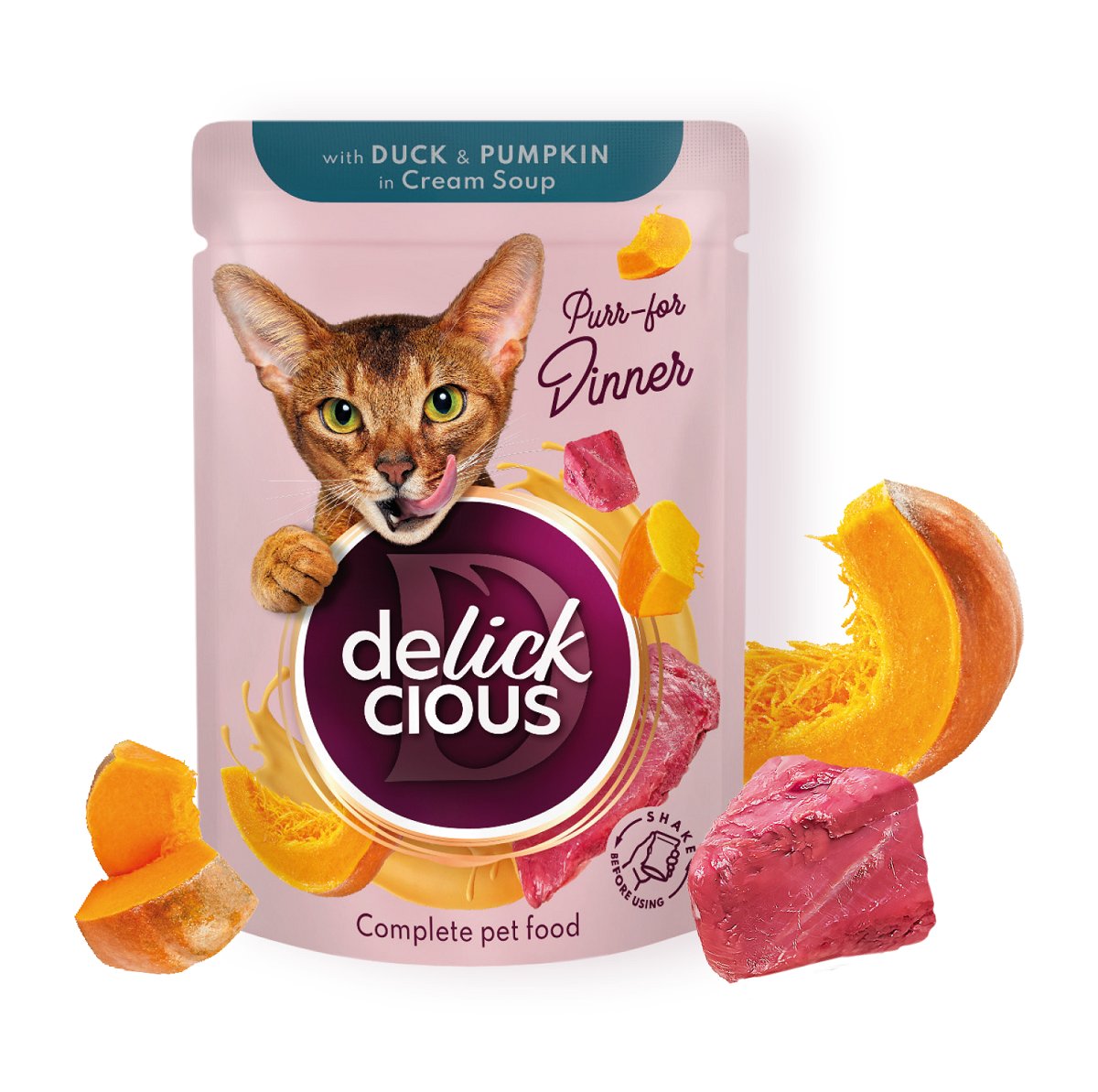 Delickcious Mokra Karma dla Kota - Paski z Kaczką i Dynią w Zupie
