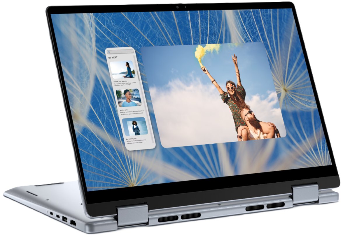 Inspiron 7440 wyposażony jest w 14-calowy wyświetlacz o wysokiej rozdzielczości 1920x1200, oferujący żywe kolory i szerokie kąty widzenia. Dotykowy ekran sprawia, że obsługa jest intuicyjna, a możliwość pracy w trybach laptopa, namiotu, podstawki i tabletu pozwala dopasować urządzenie do różnych scenariuszy użytkowania.