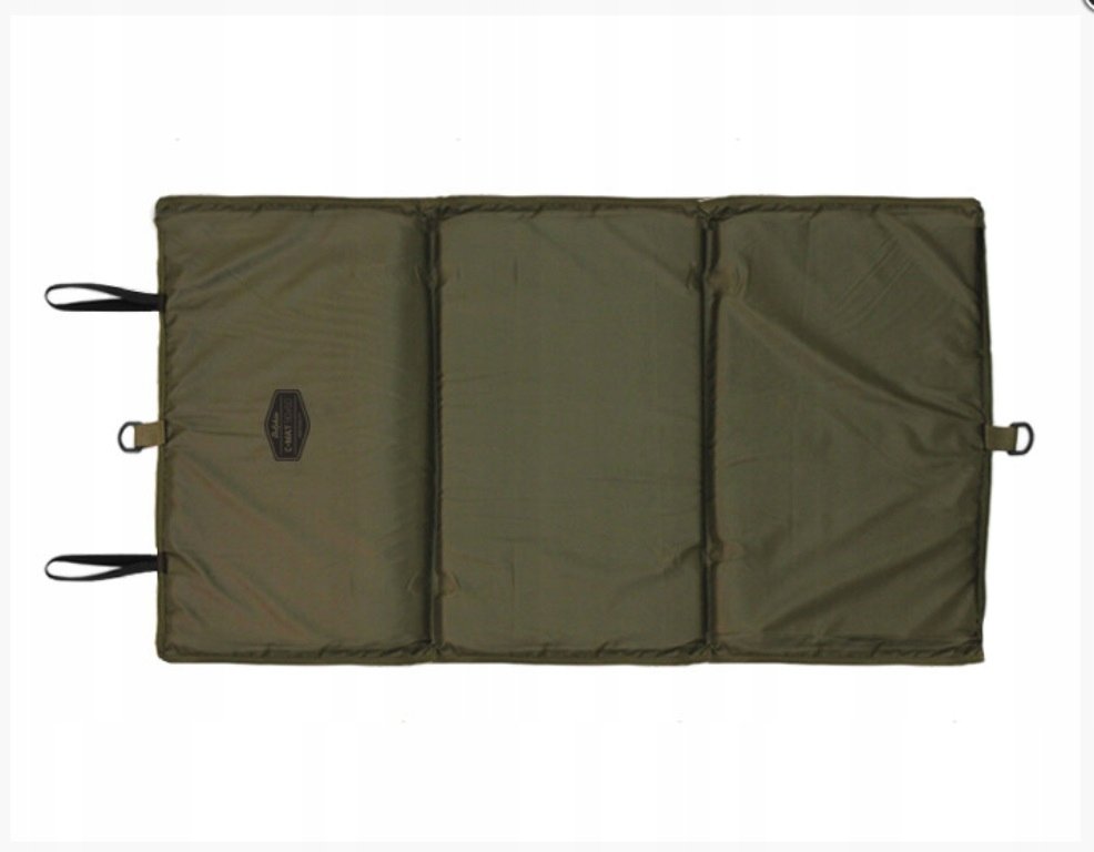 Kompaktowa, poręczna mata karpiowa od firmy Delphin do odhaczania złowionych okazów. Trwała mata składa się z materaca/pianky, która jest obszyta wodoodpornym materiałem. Przeszycie dzieli matę na trzy części, dzięki czemu łatwo się składa. Podczas transportu wystarczy przełożyć gumowe pasy przez złożoną matę. Po obu stronach maty znajdują się specjalne klipsy, które pozwolą na zakotwiczenie jej w gruncie za pomocą szpilek.