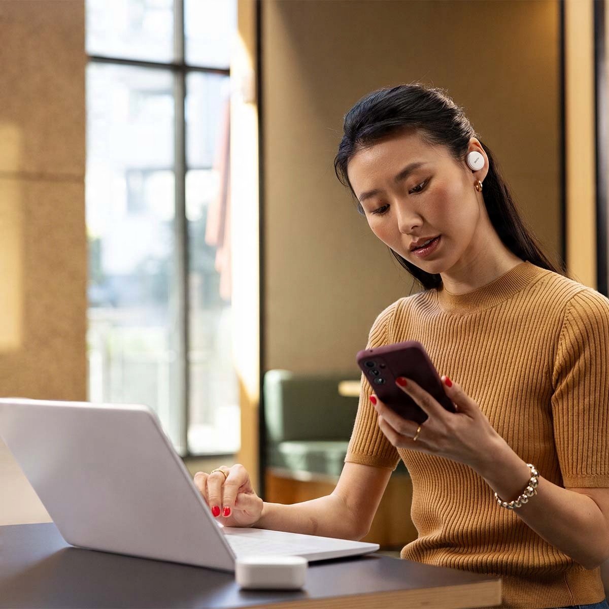 Dzięki funkcjonalności MultiPoint słuchawki mogą być aktywnie połączone do dwóch urządzeń jednocześnie, co umożliwia łatwe przełączanie się między nimi.