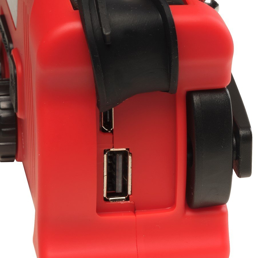 Czas pracy radia 12 - 15 godzin przy pełnym naładowaniu, czas pracy latarki LED 10 - 12 godzin