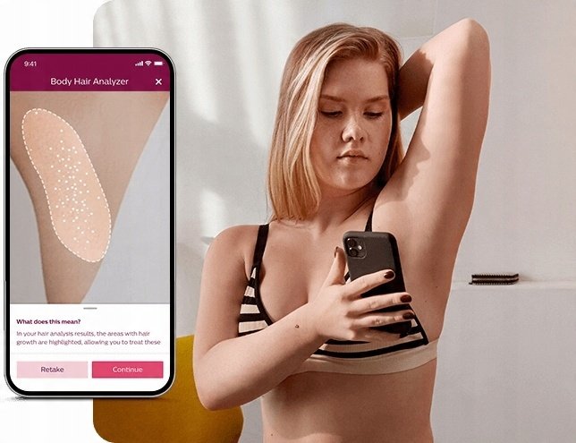 Urządzenie Philips Lumea 9900 dostosowuje intensywność światła do Twojej skóry, a aplikacja SkinAI prowadzi Cię przez cały proces.