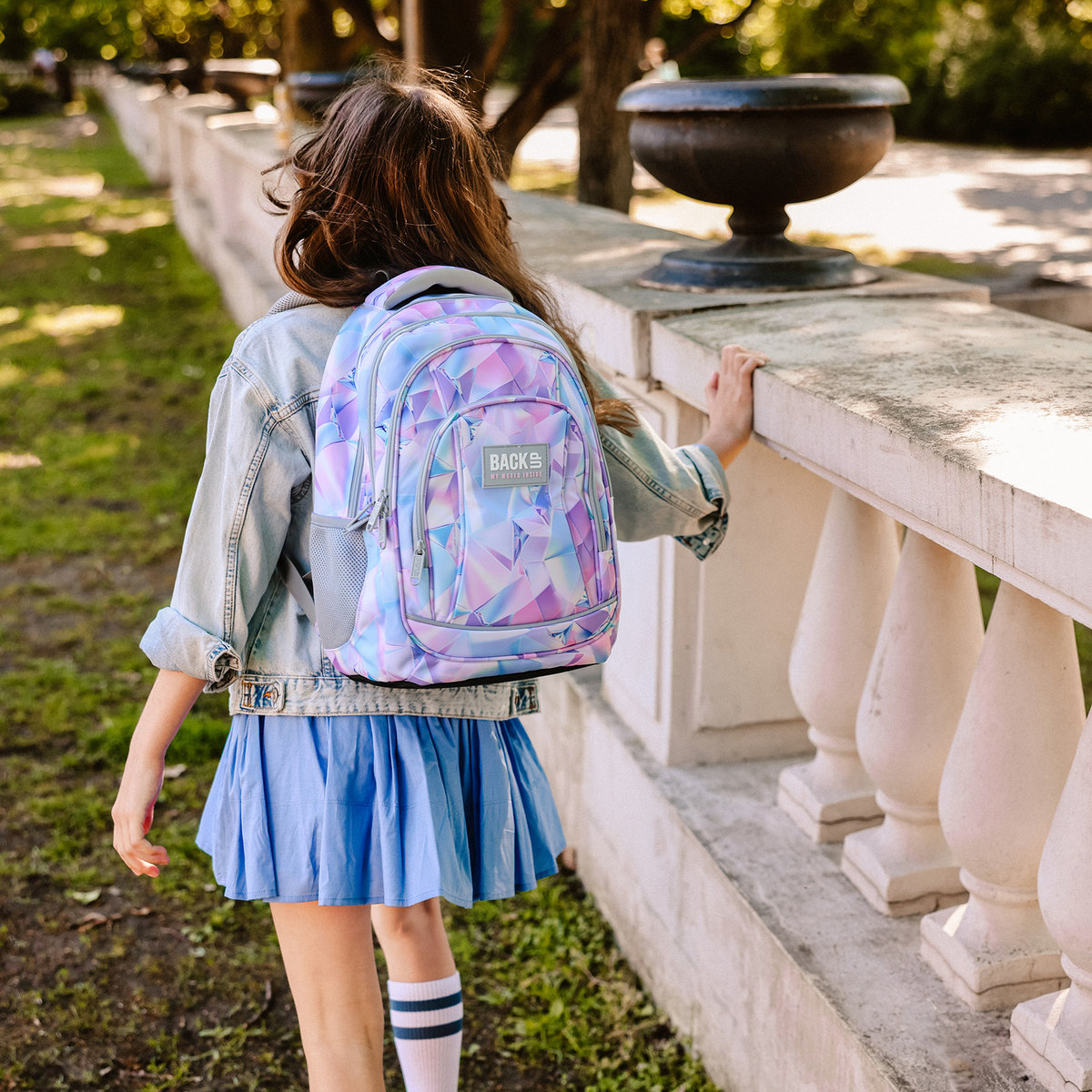 Plecak szkolny dla dziewczynki, geometryczny, jasnoniebieski, refleksy BackUp